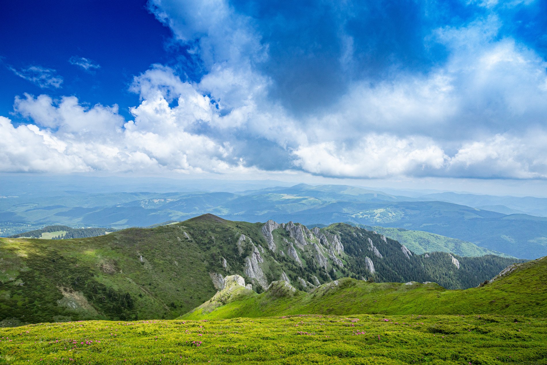 Rumänien liegt in Südosteuropa und grenzt an fünf Staaten: im Norden und Osten an die Ukraine, im Osten an Moldawien, im Süden an Bulgarien und im Westen an Serbien und Ungarn. Die Karpaten sind das wichtigste Gebirge Rumäniens. Sie ziehen sich von Norden her durch das Land und laufen in die Banater Berge aus. Höchster Berg der Karpaten in Rumänien ist der Moldoveanu mit 2.544 Meter Höhe. Weitere Landschaftsformen in Rumänien sind Hochebenen wie das Siebenbürgische Hochland und Tiefebenen wie die Pannonische und Walachische Tiefebene. Größter Fluss Rumäniens ist die Donau, die mehr als 1.000 km durch Rumänien fließt. Im Osten grenzt Rumänien an das Schwarze Meer, das vor allem im nördlichen und mittleren Teil wunderschöne Sandstrände hat. Rumänien hat heute reichlich 19 Millionen Einwohner. Die Rumänen stellen knapp 90% der Bevölkerung. Doch es gibt auch starke Minderheiten: Ungarn, Roma und früher auch Deutsche (Siebenbürger Sachsen und Donauschwaben), deren Anteil aber in den letzten Jahren zurück gegangen ist. Größte Stadt Rumäniens ist die Haupstadt Bukarest (knapp 2 Mio Einwohner), gefolgt von Cluj-Napoca, Timişoara, Iaşi, Constanƫa und Craiova.