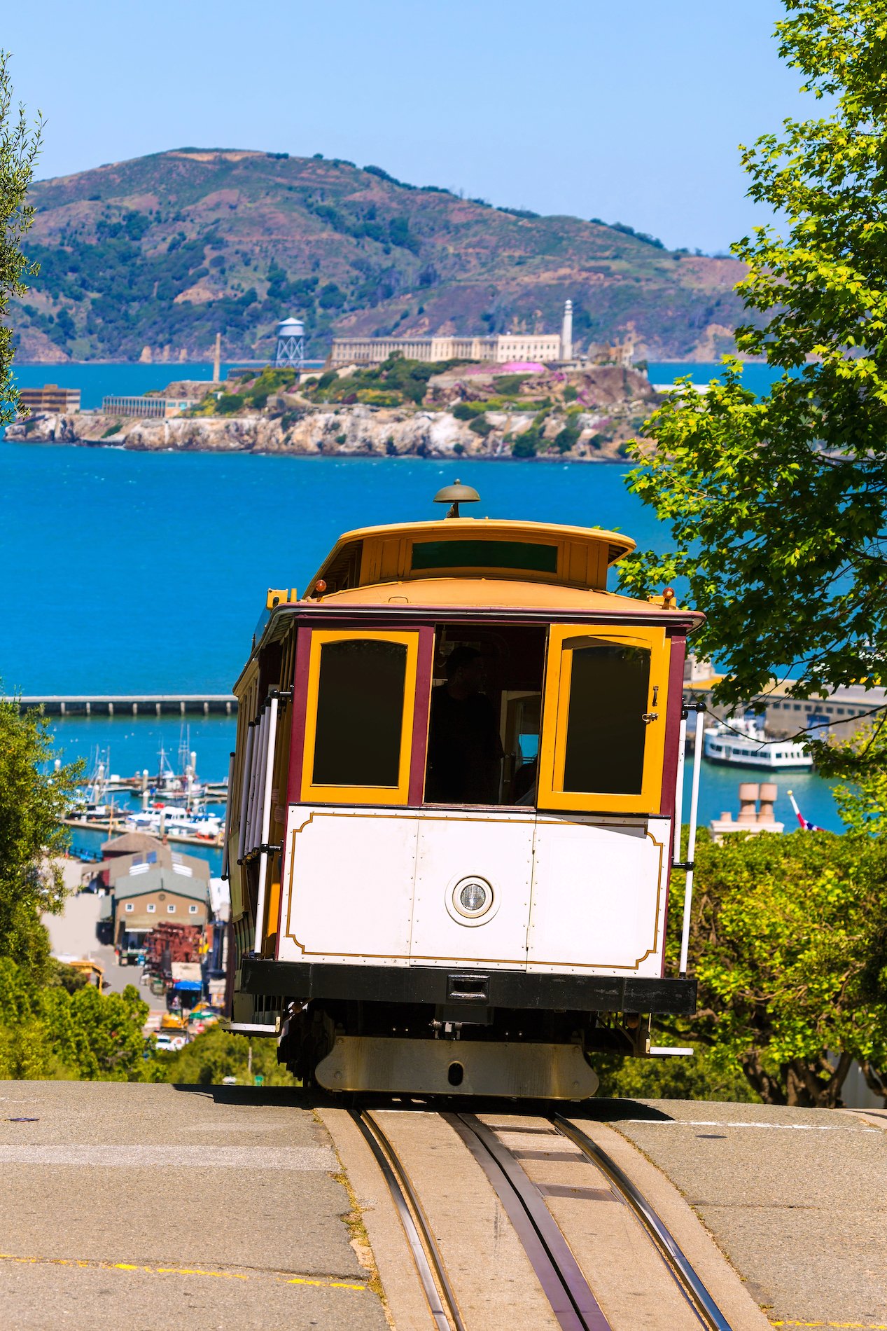 Eines der bekanntesten Wahrzeichen ist die Golden Gate Bridge, die seit 1937 die Bucht überspannt und mit ihrer leuchtend orangeroten Farbe zu den meistfotografierten Bauwerken der Welt zählt. Ebenso charakteristisch sind die Cable Cars, die seit dem 19. Jahrhundert auf den steilen Straßen verkehren und noch immer das Stadtbild prägen.