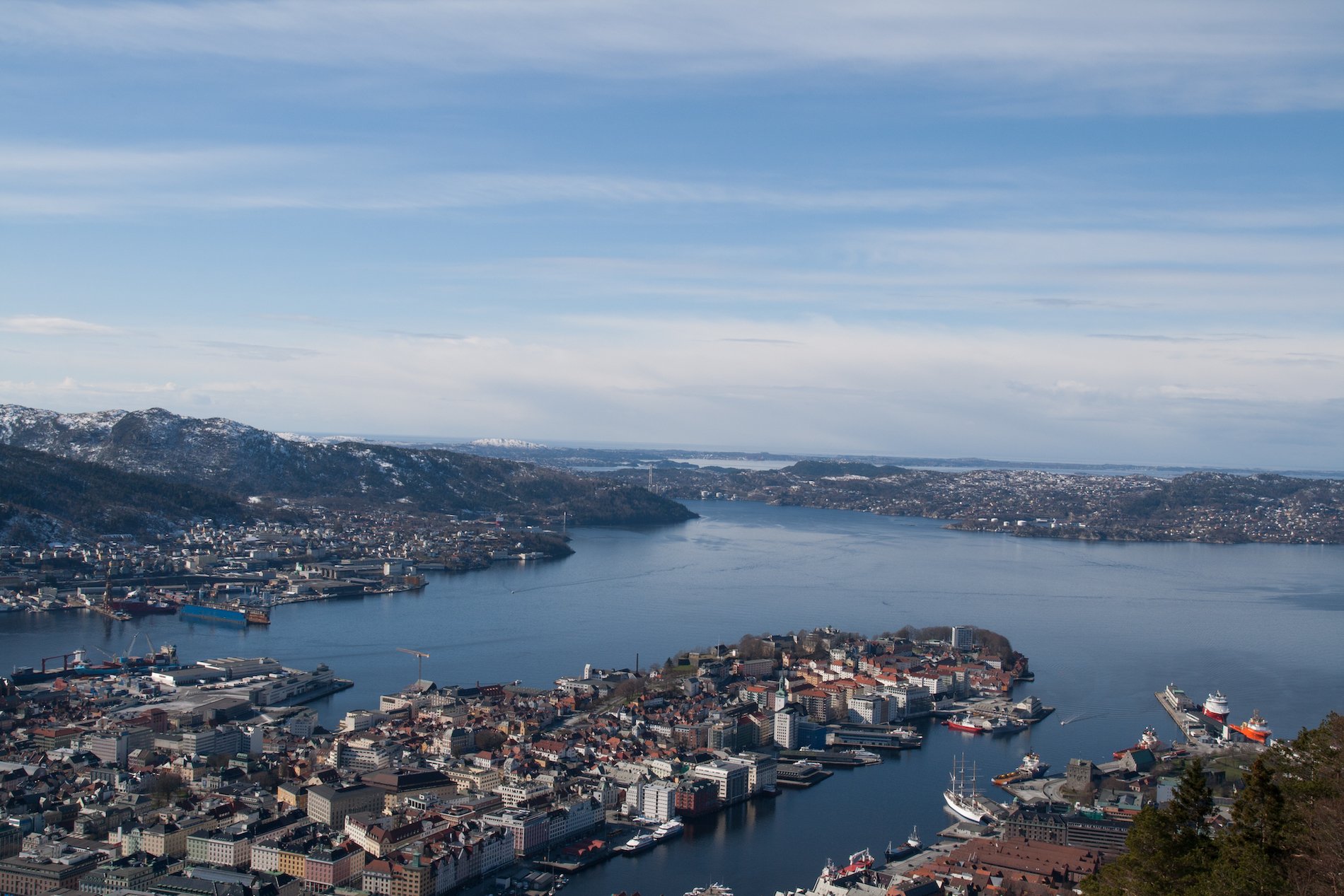 Bergen liegt an der Westküste Norwegens und ist mit etwa 280.000 Einwohnern die zweitgrößte Stadt des Landes. Die Stadt erstreckt sich zwischen Fjorden und Bergen, darunter der berühmte Berg Fløyen, der einen weiten Blick über die Stadt und die umliegende Natur bietet. Bergen gilt als „Tor zu den Fjorden“ und ist ein beliebter Ausgangspunkt für Reisen in die westnorwegische Fjordlandschaft.
